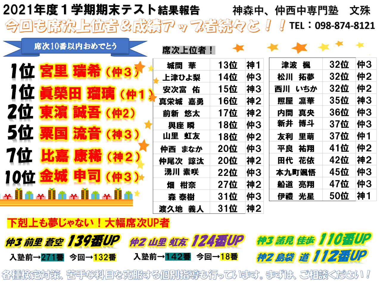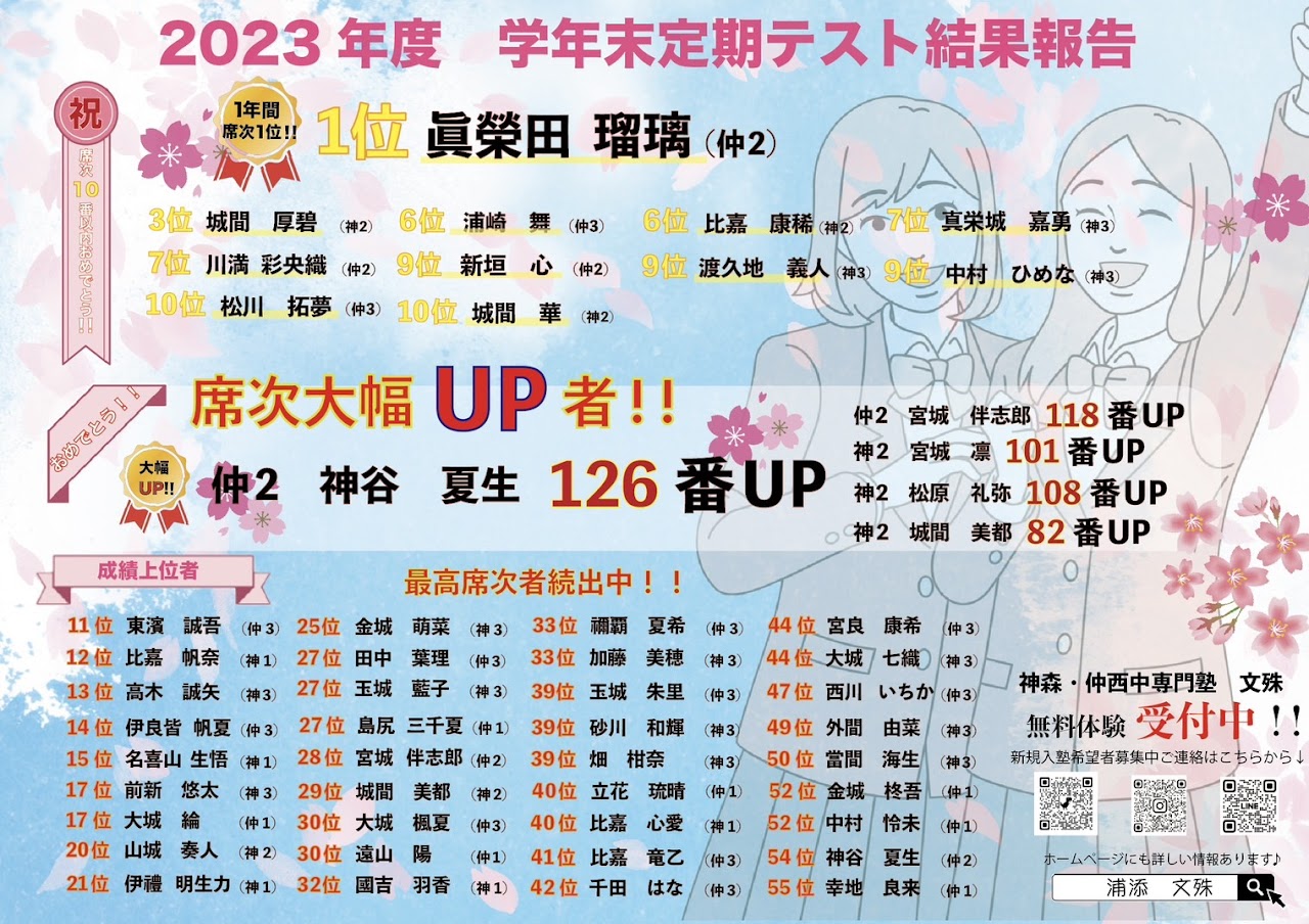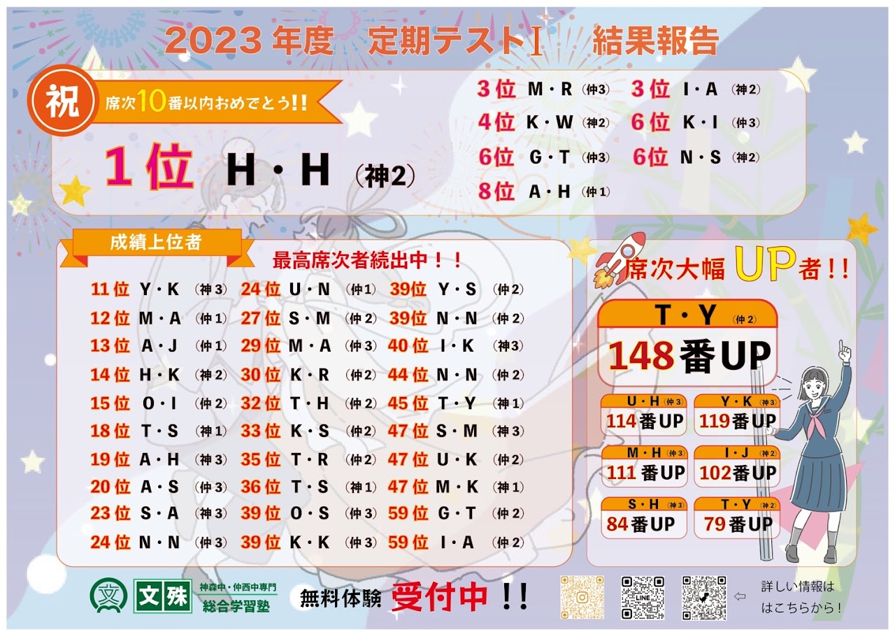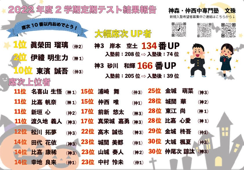 入塾後に大幅に席次UPしている生徒が増えてます!!嬉しいですね☺