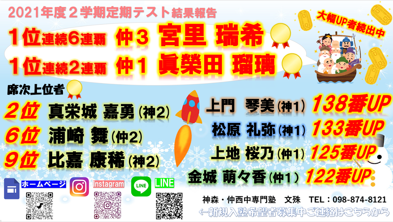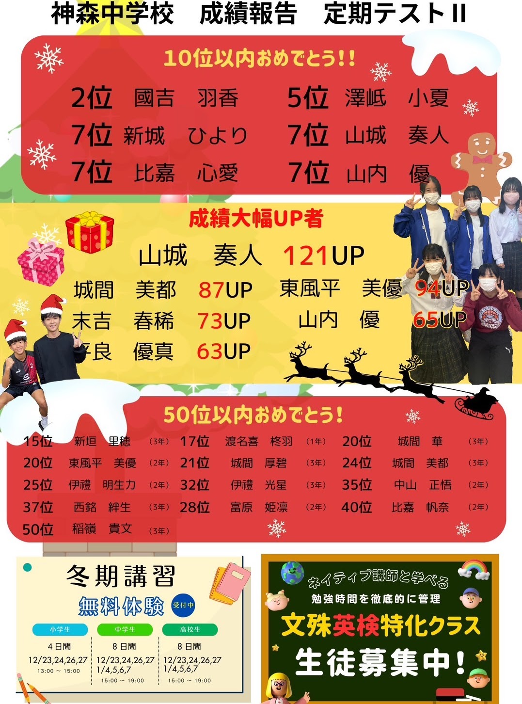 3年生は入試対策をしながらのテストになりましたが、よく頑張ってくれました😊