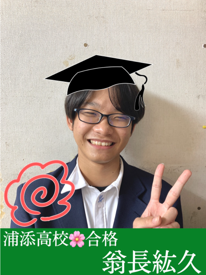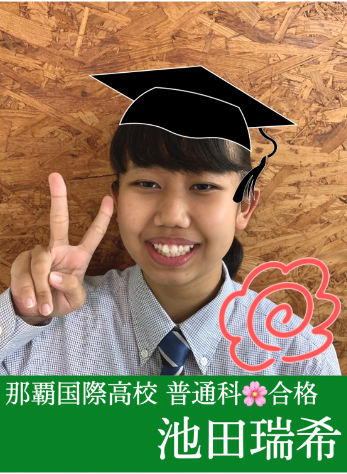 私は1年の12月から入塾し、受験までお世話になりました。初めは200番近い席次、3.0未満の内申点と低い成績でした。しかし、3年間こんな僕を見放さず、最後まで心身に付き合ってくださったスタッフの皆さんのおかげで、3年生の最後には席次50番、内申4.7を取る事ができました。更に念願だった浦添高校合格も叶い、最高の結果で中学校を卒業することが出来ました。